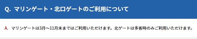 公式FAQでは、北ゲートは「多客時のみ利用」と案内されています。