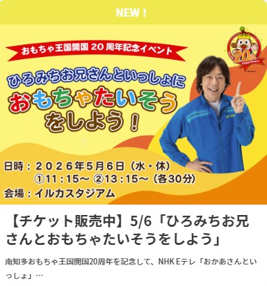 4月29日はさかなクントークショー、5月6日はひろみちお兄さんイベントが公式発表済みです。