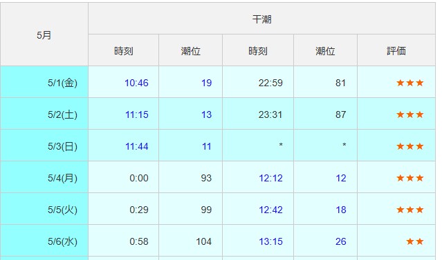 - 大潮・中潮の日